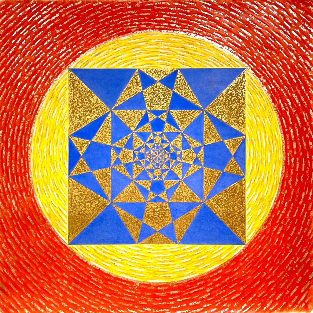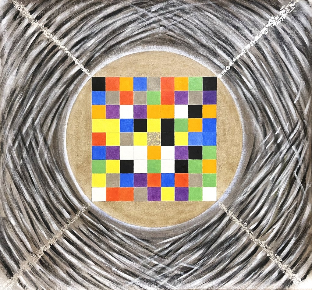 Fatte queste premesse, l’arte che qui si presenta ha certamente un carattere di consapevole volontarietà nel perseguire l’indagine visiva dei concetti matematici indagati. Se la matematica mostra una misteriosa bellezza, la sua resa visiva ha un duplice scopo. Mostrare in un modo prettamente visivo e nitido immagini derivate dalle elaborazioni di regole di numeri, riaffermando, anche a livello matematico, l’inscindibile unione tra la rappresentazione astratta dei numeri con quella più tangibile delle figure. Inoltre, proprio partendo dalle proprietà visive, mostrare l’unione di grande complessità ed estrema semplicità, che creano un fascino insopprimibile nella mente dell’osservatore. Senza dimenticare che l’unione di forme e colori sono certamente capaci di offrire una reazione psichica, che in questo contesto poco esplorato si vorrebbe anche filosofica nella contemplazione dell’infinità di forme ottenibili da semplici regole. Questa convergenza invece che frustrare l’immaginazione, la slancia e la incanala nella constatazione interiore che la varietà delle immagini, per quanto complesse, è sempre riconducibile ad una unitarietà di fondo; allo stesso modo la vita individuale unica e irripetibile può essere esperita come appartenente ad un disegno più vasto, uscendo dagli schemi dell’individualismo e dell’incomunicabilità che ammorbano la nostra era contemporanea, dove la visione estremamente antropocentrica (sì, ma quale uomo?) sembra piuttosto una scusa per riaffermare le leggi della sopraffazione del forte sul debole, a danno dell’intera creazione, e, in ultima analisi, anche dell’habitat umano.